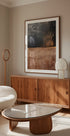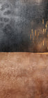 Una obra de arte abstracta moderna con tonos terrosos en marrón, naranja y gris, combinados con una superficie de textura rústica. Los trazos verticales dorados añaden profundidad y contraste, creando una expresión atemporal. Perfecto para interiores minimalistas, rústicos o modernos que quieran calidez y sofisticación.