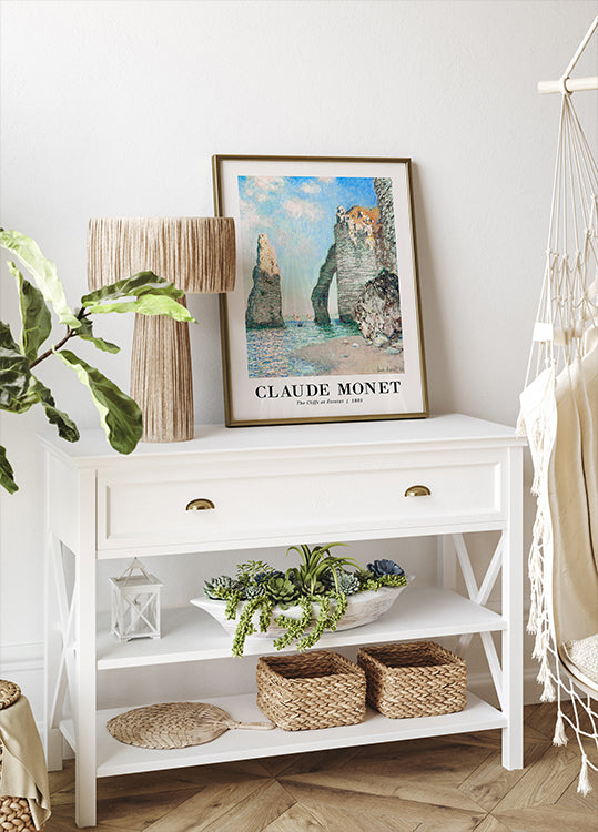 Una impresionante pintura impresionista de Claude Monet que representa los icónicos acantilados de Étretat. Con sus características pinceladas y colores que reflejan la luz, este paisaje marino clásico captura la cruda belleza de la naturaleza. Perfecto para amantes del arte y admiradores de Monet.