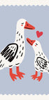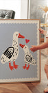Una ilustración dulce y conmovedora de una madre pato y su patito compartiendo un tierno momento, resaltado por un pequeño corazón rojo. El suave fondo pastel y el divertido estilo de dibujo crean un ambiente cálido y amoroso, perfecto para habitaciones infantiles, guarderías o espacios que celebran el amor y la conexión.