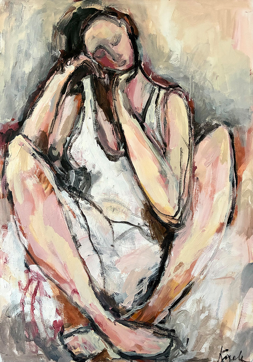 Morning de Magdalena Krzak captura el momento de tranquilidad entre el sueño y el despertar: una figura femenina envuelta en suaves tonos rosados y blancos, con la luz de la mañana deslizándose sobre los contornos. El estilo sutil y abstracto-figurativo crea calma y reflexión y da a la habitación un equilibrio poético y femenino. Perfecto para el dormitorio o el rincón tranquilo.