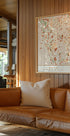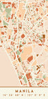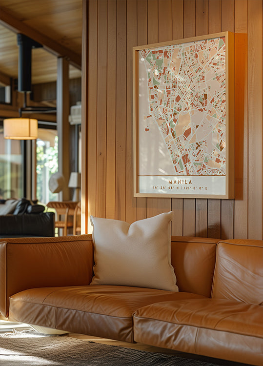 Black Maps Earth Tones 46 de Emiliano Deificus transforma la textura vibrante de la ciudad en una composición gráfica sofisticada. En superficies de color negro intenso y tonos tierra, las calles y los vecindarios se dibujan como una elegante cuadrícula, donde la latitud y la longitud sugieren dirección y ritmo, un tranquilo tributo a Manila. El alma de la ciudad en forma minimalista.