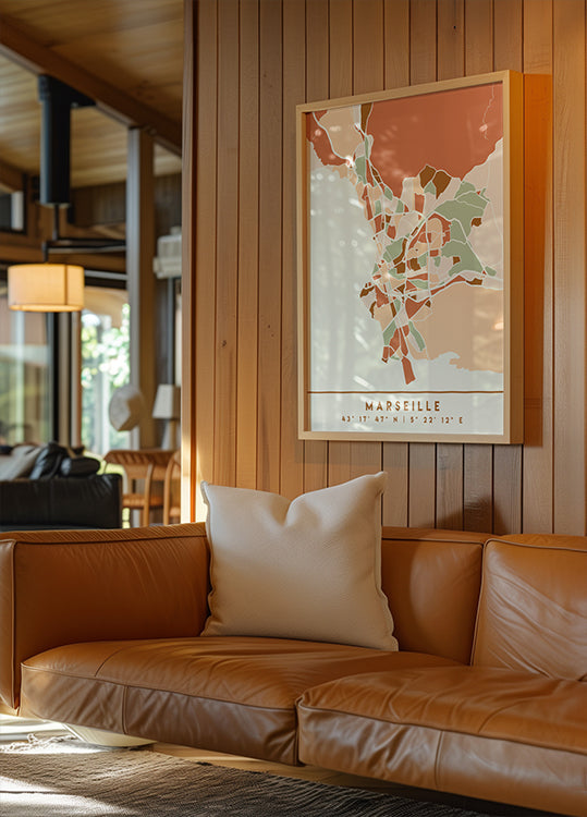 Black Maps Earth Tones 48 de Emiliano Deificus es un mapa estilizado de la ciudad de Marsella en cálidos tonos tierra sobre negro intenso. Las líneas limpias y la calma gráfica capturan el pulso de la ciudad y la geometría costera sin ruido, y brindan una expresión sofisticada y atemporal que eleva todo, desde la sala de estar hasta la oficina. Perfecto para el minimalismo nórdico.