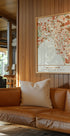 Un evocador póster con un mapa de la ciudad de Melbourne de Emiliano Deificus. Las superficies negras y oscuras se encuentran con tonos tierra cálidos, donde las calles, los barrios y la costa emergen como líneas y campos elegantes. Un atractivo urbano y elegante que captura el ritmo de la gran ciudad y te invita a hacer descubrimientos diarios. Perfecto para salón, oficina o estudio.