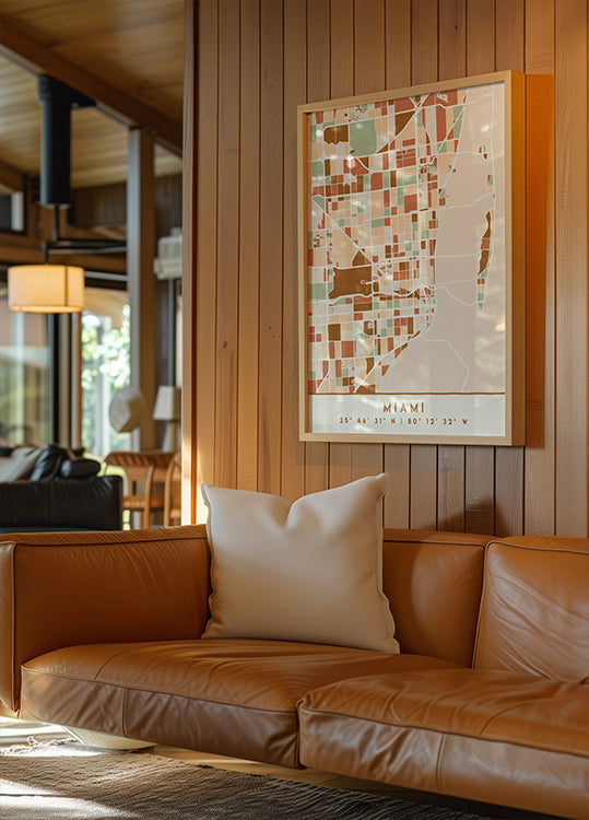 Black Maps Earth Tones 53 de Emiliano Deificus es un póster atmosférico de un mapa de la ciudad en tonos tierra profundos. Las finas líneas dibujan las calles, la costa y los vecindarios de Miami en una expresión gráfica elegante. Minimalista y urbano, añade calma y carácter a la pared y te invita a explorar la ciudad. Perfecto para salón, despacho o recibidor.