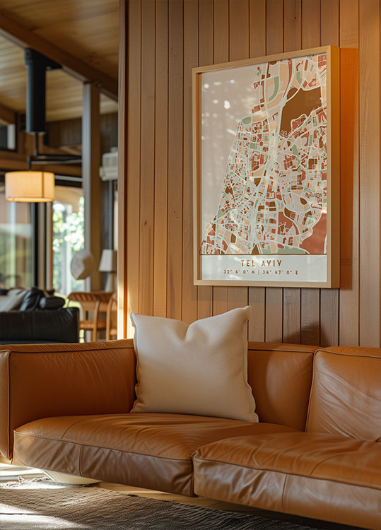 Un mapa atmosférico de la ciudad de Tel Aviv en tonos tierra, donde las líneas negras dibujan la costa, los barrios y las calles con precisión gráfica. Emiliano Deificus une cartografía y arte en una elegante composición que captura el ritmo de la ciudad, los contrastes y la presencia del Mediterráneo: atemporal, urbano y refinado. Perfecto para habitaciones modernas.