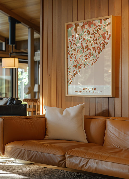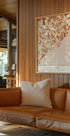 Black Maps Earth Tones 89 de Emiliano Deificus es una obra de arte cartográfica de mal humor: una base de color negro intenso con capas de tonos cálidos de arcilla, arena y ocre que traza cuadrículas urbanas y líneas costeras. Las texturas sutiles y los contrastes audaces evocan la vida urbana de América del Norte: tranquila, moderna y ricamente atmosférica en cualquier pared. Un punto focal sorprendente para los amantes de los mapas y el diseño.