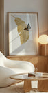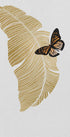 Una obra de arte minimalista refinada que presenta una hoja de palma dorada y una mariposa monarca delicadamente detallada. La limpia composición combina elegancia tropical con simbolismo natural, lo que lo convierte en un motivo botánico atemporal perfecto para interiores modernos o rústicos.
