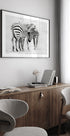 Dos cebras se encuentran en un tierno abrazo en la sabana de Kenia en este poético póster fotográfico en blanco y negro. Tender Moment del fotógrafo John Fan captura la calma, la cercanía y la elegancia atemporal con una expresión brillante, donde el ritmo gráfico de las rayas se convierte en un símbolo minimalista de amor y unión. Un homenaje a la poesía de la naturaleza.