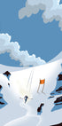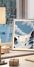 Snowy Mountain captura el pulso del invierno: un póster de esquí de inspiración retro que muestra a un corredor de slalom deslizándose a toda velocidad por una deslumbrante ladera blanca. Los tonos azules nítidos, las nubes espectaculares y los picos irregulares crean una sensación de frescura alpina, aventura y la clásica atmósfera del esquí europeo. Perfecta para despertar los sueños de viaje y las ganas de curvas nevadas.