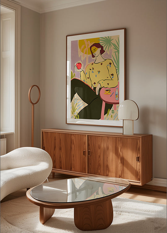 Woman With Apple de Sandra Poliakov: papel de primera calidad con una superficie suave y mate y un tacto elegante. El acabado mate reduce el brillo y brinda una apariencia refinada y atemporal. Fuerte y duradero para un uso duradero, ideal tanto para entornos profesionales como para exhibiciones decorativas.