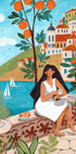 Póster de viaje Mujer en la costa mediterránea de Caroline Bonne Müller: papel de primera calidad con una superficie mate suave y un tacto elegante. El acabado mate reduce el brillo y brinda una apariencia refinada y atemporal. Fuerte y duradero para un uso duradero, ideal tanto para entornos profesionales como para exhibiciones decorativas.