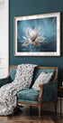 Esta elegante fotografía macro captura una delicada flor en suaves tonos blancos y azules, resaltando las venas de los pétalos y las relucientes gotas de rocío. El ambiente de ensueño y los primeros planos detallados crean una obra de arte sofisticada y relajante, perfecta para una pared con cuadros botánicos modernos.