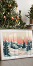 Una poética escena invernal, donde los abetos se elevan en un paisaje nevado, mientras finos copos de nieve caen silenciosamente a través del aire limpio y fresco. El cielo tenue y los contornos suaves crean una tranquila atmósfera navideña, perfecta para traer calma, presencia y comodidad nórdica al hogar. La composición invita a la contemplación y la tranquilidad invernal en cualquier estancia.