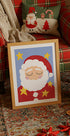 Un moderno y exuberante cartel navideño con Papá Noel rodeado de estrellas brillantes. El cálido traje rojo brilla contra un cielo nocturno azul profundo, mientras que las estrellas amarillas crean una expresión divertida y acogedora. Un encantador punto de atracción para decoraciones de temporada, ilustrado por Bainai, lleno de alegría y magia invernal. Perfecto para salón, recibidor o habitación infantil.