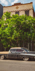 Un cartel nostálgico de un automóvil clásico estacionado en Williamsburg, Brooklyn, Nueva York. La escena captura el encanto de un viejo Chevrolet Bel Air contra un fondo urbano de edificios de ladrillo, árboles verdes y texturas de calles. Arte de pared perfecto para entusiastas de los automóviles, amantes de la ciudad y fanáticos del estilo retro americano.