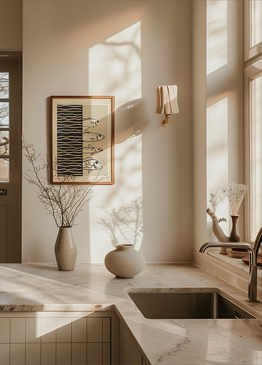 Abstract Fishes On Waves de Flow Line: papel de primera calidad con una superficie mate suave y un tacto elegante. El acabado mate reduce el brillo y brinda una apariencia refinada y atemporal. Fuerte y duradero para un uso duradero, ideal tanto para entornos profesionales como para exhibiciones decorativas.