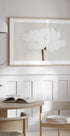 Una peonía blanca despliega sus sedosos pétalos sobre un suave fondo gris, donde delicados tonos rosados y finos trazos verdes crean calma y poesía. La sencilla naturaleza muerta añade elegancia atemporal y minimalismo nórdico a la habitación, perfecta como punto focal tranquilo en la sala de estar, el dormitorio o en rincones creativos. Un discreto homenaje a la belleza de la naturaleza.