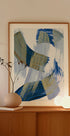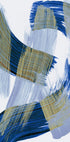 Un llamativo póster abstracto con fuertes pinceladas en azul profundo, dorado apagado y blanco suave sobre un fondo blanco puro. Los trazos fluidos y las texturas en capas crean una sensación de movimiento y equilibrio: una obra de arte perfecta para interiores modernos, decoración minimalista o paredes de galerías escandinavas.