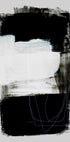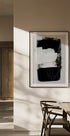 Un llamativo póster abstracto monocromático con amplias pinceladas en blanco y negro, superpuestas con sutiles detalles de líneas. Los fuertes contrastes y las superficies texturizadas crean una composición minimalista pero poderosa, perfecta para interiores modernos, diseño escandinavo o paredes de galerías contemporáneas.