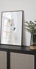 Et fortryllende nærbillede af en arktisk ulv, fanget i snehvid ro med isblå, gennemtrængende øjne og pels pudret af frost. Jim Cumming indrammer dyrets vilde værdighed i et højlyst, minimalistisk udtryk, der bringer stilhed, styrke og nordlig magi ind i rummet. Perfekt som roligt fokuspunkt i stuen, soveværelset eller hjemmekontoret.