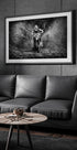 Un espectacular motivo en blanco y negro de un piloto de motocross atravesando el barro y el agua. El cartel irradia velocidad, energía y adrenalina pura. La explosión golpea al piloto en un momento de intensidad, convirtiéndolo en una declaración distintiva para los fanáticos de los deportes de motor y los amantes de las imágenes poderosas.
