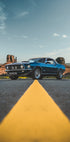 Un clásico Ford Mustang azul estacionado con orgullo en la icónica Ruta 66, rodeado de infinitos cielos desérticos e imponentes formaciones rocosas. Esta poderosa imagen captura el espíritu de libertad, nostalgia y cultura estadounidense de los viajes por carretera: un tributo atemporal a los potentes autos, las autopistas abiertas y la aventura.