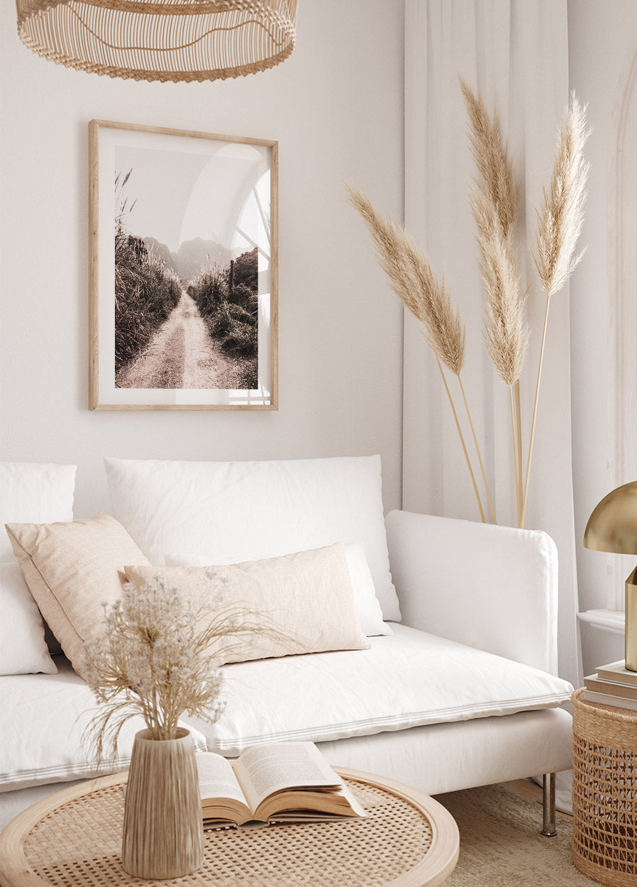 Póster de camino de tierra en campos de hierba