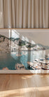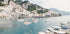 Una fotografía impresionante de la costa de Amalfi, donde las casas de colores pastel se elevan sobre los acantilados y los barcos flotan pacíficamente en las aguas turquesas. La escena captura la esencia del verano italiano: una combinación armoniosa de encanto costero, arquitectura y la tranquilidad del Mediterráneo.