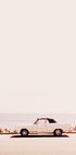 Una fotografía minimalista y nostálgica de un descapotable antiguo aparcado junto al mar. Esta obra de arte captura la esencia de la costa de California y evoca recuerdos de viajes por carretera, días de verano y un encanto retro atemporal.