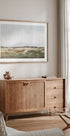 Un paisaje abstracto tranquilo de Dan Hobday con tonos tierra y pinceladas suaves. Con tonos de verde, beige y gris que se funden en un horizonte tranquilo, la obra da una sensación de calma y atemporalidad. Perfecto para interiores estilo granja, casas minimalistas modernas o como parte de una pared con cuadros inspirados en la naturaleza.