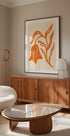 Póster Estilizado tulipán naranja y hojas