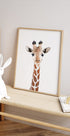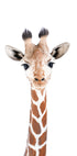 Un hermoso y llamativo retrato de una cría de jirafa capturado sobre un fondo blanco puro. Los patrones elegantes, los ojos tiernos y el cuello largo resaltan la gracia y la belleza de este joven animal salvaje. Perfecto para la habitación de los niños, los amantes de los animales o los interiores minimalistas modernos.