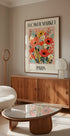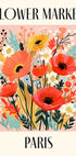 Un encantador póster de estilo vintage con vibrantes amapolas, flores silvestres y suaves colores pastel. El cartel celebra la elegancia de los mercados de flores de París y combina la estética retro de los viajes con la belleza botánica.