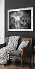 Una vista icónica del canal de Ámsterdam con casas históricas a dos aguas, un puente clásico y bicicletas a lo largo del muelle. En blanco y negro se capta el ritmo tranquilo de la ciudad y los reflejos en el agua, mientras las nubes pasan a la deriva. Un paisaje urbano atemporal de Melanie Viola que lleva la elegancia europea al hogar. Perfecto para los amantes de la arquitectura y los recuerdos de viajes.
