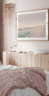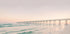 Una tranquila vista costera con un largo muelle que se adentra en el mar, bañado en suaves colores pastel al atardecer. Las olas y los cielos tranquilos crean una atmósfera tranquila, perfecta para evocar paz y armonía.