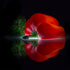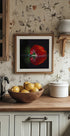 Un jugoso pimentón rojo recién picado sobre una superficie brillante y reflectante, donde la luz y la sombra crean una composición tranquila y moderna. Los trozos de semillas frescas y los bordes afilados aportan energía, mientras que el fondo limpio crea equilibrio. Un elegante motivo de cocina de Wieteke de Kogel, perfecto para espacios gastronómicos. Y poesía cotidiana.
