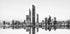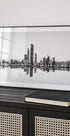 Un llamativo póster en blanco y negro de la ciudad de Abu Dabi, que captura el horizonte moderno reflejado perfectamente en las tranquilas aguas. Con elegantes torres, luces de la ciudad y una composición de espejos, la obra de arte resalta la elegancia arquitectónica y el espíritu vibrante de la capital de los EAU.