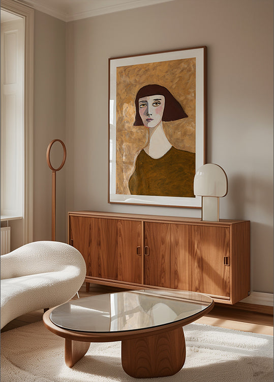Retrato expresivo de dama con corte de pelo Bob y ojos verdes (NUEVO)