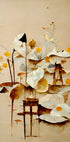 Una delicada obra de arte botánica inspirada en el estilo vintage, con formas florales en capas en suaves tonos beige y cálidos dorados. Con efectos de corte de papel y formas orgánicas, la obra combina la abstracción con la belleza natural, ideal para interiores modernos que buscan una expresión atemporal y tranquila.