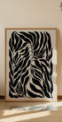 Un póster atrevido y elegante con siluetas abstractas de hojas negras sobre un fondo beige. Esta obra de arte botánica minimalista combina formas orgánicas con fuertes contrastes, perfecta para interiores modernos y contemporáneos.