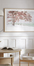 Snow at the lake af Ulrike Eisenmann indfanger vinterens stille poesi: et frossent vand spejler skovens silhuetter, mens snefnug daler og nøgne grene tegner fine mønstre mod den blege himmel. Et strejf af røde blade bryder det kølige farvespil og giver motivet varme og dybde. Perfekt til at skabe ro og vinterstemning i dit hjem.