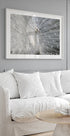 Un impresionante póster de un pavo real blanco con las plumas completamente extendidas, rezumando pureza y gracia. La sorprendente composición captura la majestuosa belleza del pájaro con discreto detalle, evocando una sensación de fantasía y elegancia angelical. Un atractivo que combina las maravillas de la naturaleza con la sofisticación artística.