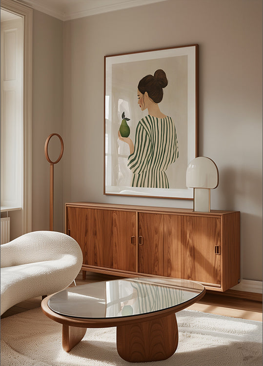 La mujer y la pera de Annika Persson: papel de primera calidad con una superficie suave y mate y un tacto elegante. El acabado mate reduce el brillo y brinda una apariencia refinada y atemporal. Fuerte y duradero para un uso duradero, ideal tanto para entornos profesionales como para exhibiciones decorativas.