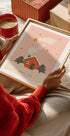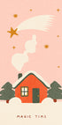 Una acogedora atmósfera invernal se extiende en un paisaje cubierto de nieve, donde una pequeña cabaña brilla cálidamente en la oscuridad y las estrellas titilan sobre las copas de los árboles. El cartel capta la magia de la Navidad con tranquilos copos de nieve, huellas en la nieve y un toque de aventura que despierta nostalgia e invita a la calma y la presencia. Perfecto para llevar el brillo navideño al hogar.