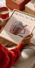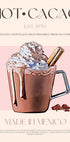 Una taza humeante de cremoso chocolate caliente ocupa un lugar central en una ilustración de inspiración retro de Nazma Khokhar. Los cálidos tonos marrones, los reflejos cremosos y los suaves tonos rosados crean una atmósfera de cafetería vintage y acogedora. Una tipografía elegante y una sutil referencia a los años 50 sugieren la estética clásica de los carteles de café con un toque de tradición del cacao mexicano.