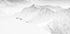 En lys, minimalistisk scene fra Sunnmørsalpene i Norge: en række små silhuetter af vandrere og skiløbere bevæger sig i kø langs en snedækket kam mod en fjern top. De fine linjer og det høje lys skaber et grafisk, næsten vægtløst udtryk. Fotografi af Åsmund Keilen. Kontrasten mellem det hvide snelandskab og de mørke figurer giver dybde og ro.