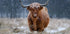 Vaca de las tierras altas nevadas