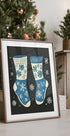Las letras azules llamativas resaltan sobre un fondo negro intenso, deletreando divertidas palabras invernales como "Calcetines" y "Prendas de punto" en un diseño retro y nostálgico. Nítido, gráfico y discreto, canaliza noches heladas, recuerdos de días de nieve y vibraciones acogedoras de la temporada, perfecto para llevar un ambiente fresco de vacaciones a espacios modernos.