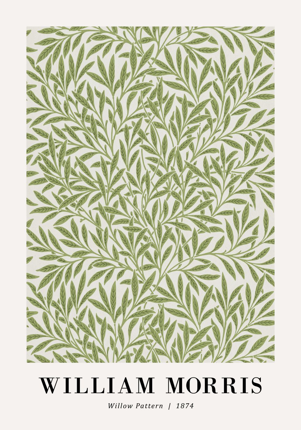 Un póster botánico atemporal con el icónico *Patrón de Sauce*, diseñado por William Morris en 1874. Las delicadas hojas verdes crean un fascinante patrón inspirado en la naturaleza que captura a la perfección el estilo del movimiento *Arts and Crafts*. Ideal para quienes aman el diseño vintage, la artesanía clásica y los patrones naturales.