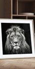 Un dramático retrato en blanco y negro de un joven león macho, capturado con una iluminación tenue, una mirada intensa y una melena majestuosamente naciente. Christian Meermann captura la fuerza y ​​la vulnerabilidad del animal en un primer plano atemporal, donde la textura del pelaje y las sombras crea calma, profundidad y una elegancia moderna y minimalista. Perfecto como punto de atracción en el salón, la oficina o la galería.
